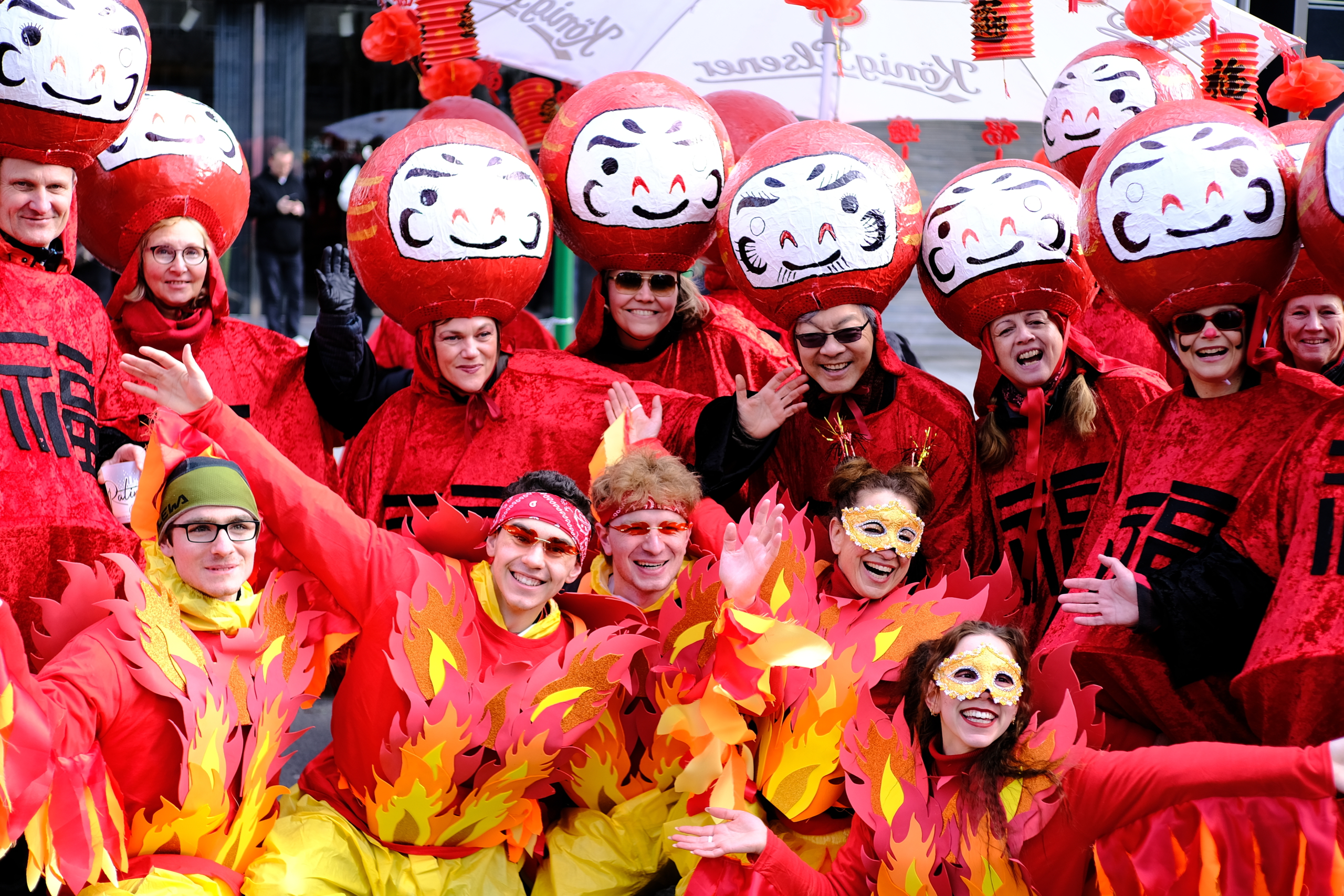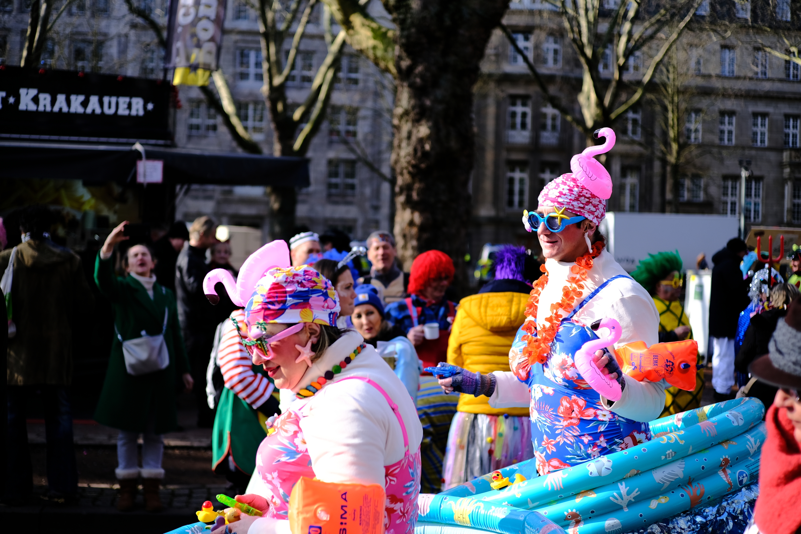 Next to the famous „Rosenmontags Zug“ in Düsseldorf, there is another great carnival event the „KÖ Karneval“ on Sunday. The big difference between those two is the fact that the Rosenmontags Zug highly commercial and sponsored by the industry is and the Kö Karneval 100% homemade is.